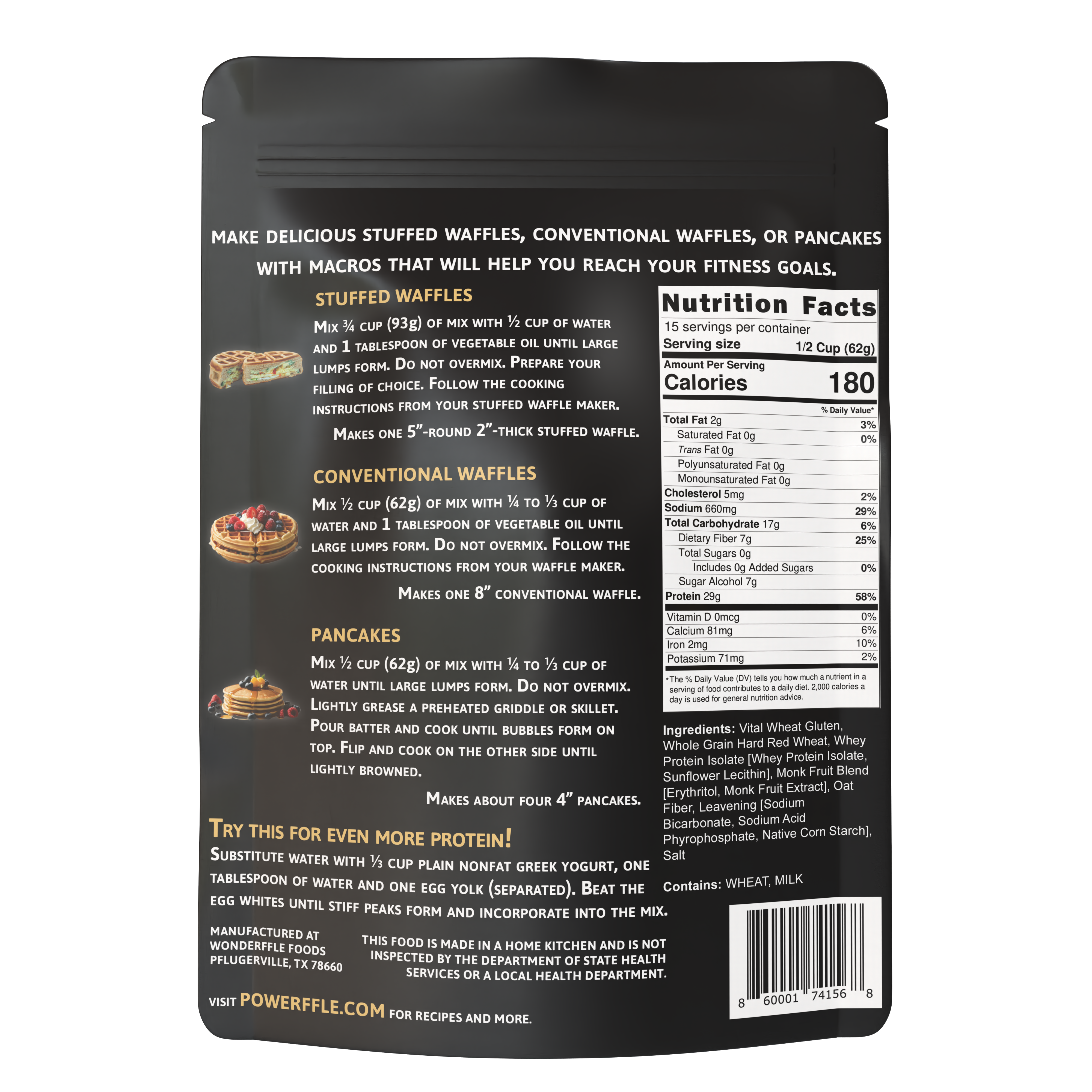 Whether you're bulking up with stuffed waffles, going classic with traditional waffles, or making protein-packed pancakes, the Powerffle Protein Stuffed Waffle and Pancake Mix is your go-to. Just add water for a quick and convenient meal that fits seamlessly into both a rigorous weekday schedule or a relaxed weekend brunch.