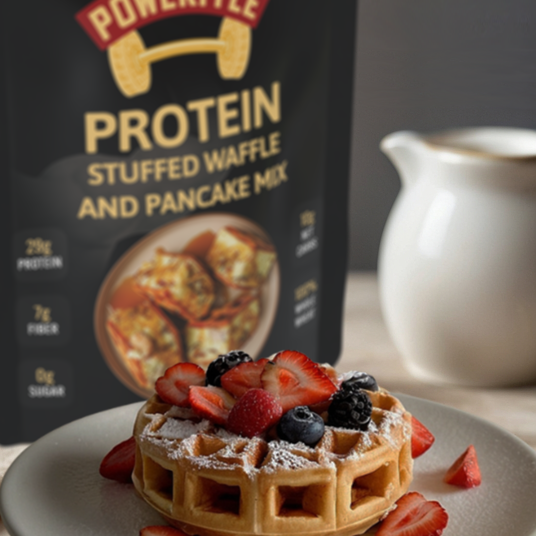 Transform your breakfast with the Powerffle Protein Stuffed Waffle and Pancake Mix – where optimal nutrition meets delicious convenience. Fuel your fitness journey with Powerffle!
