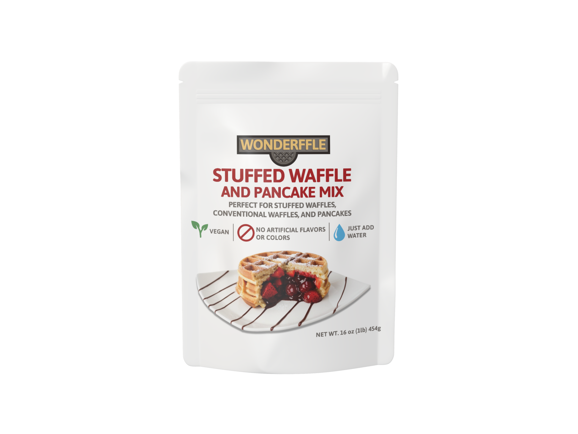 In 2018, we created the original Stuffed Waffle Iron which bakes Belgian-style waffles with your favorite foods inside. Continuing with our practice of innovation, we are now the first brand to develop a mix formulated specifically for stuffed waffles!
